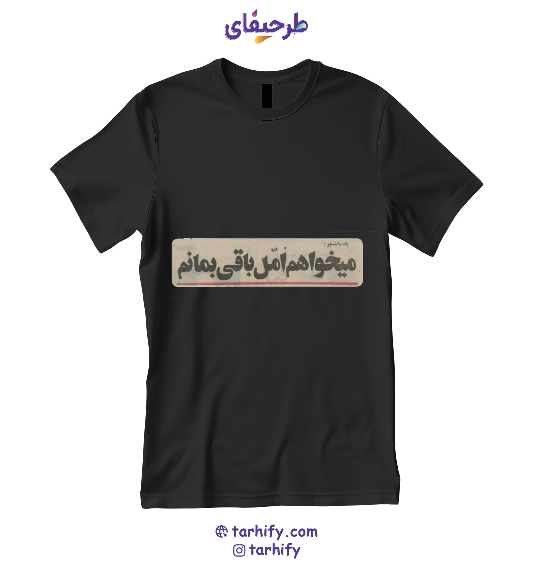 تیشرت طرح میخواهم امل باقی بمانم با طراحی مینیمال و نوشته فارسی پرمفهوم، حس پاکی، سادگی و صداقت را در استایل شما زنده میکند. این تیشرت مناسب افرادی است که از نگاه فلسفی و شاعرانه به زندگی لذت میبرند و لباس را ابزاری برای بیان درونشان میدانند. چاپ ظریف و پارچه نخی لطیف، آن را برای استفاده روزمره یا موقعیتهای هنری عالی میسازد.