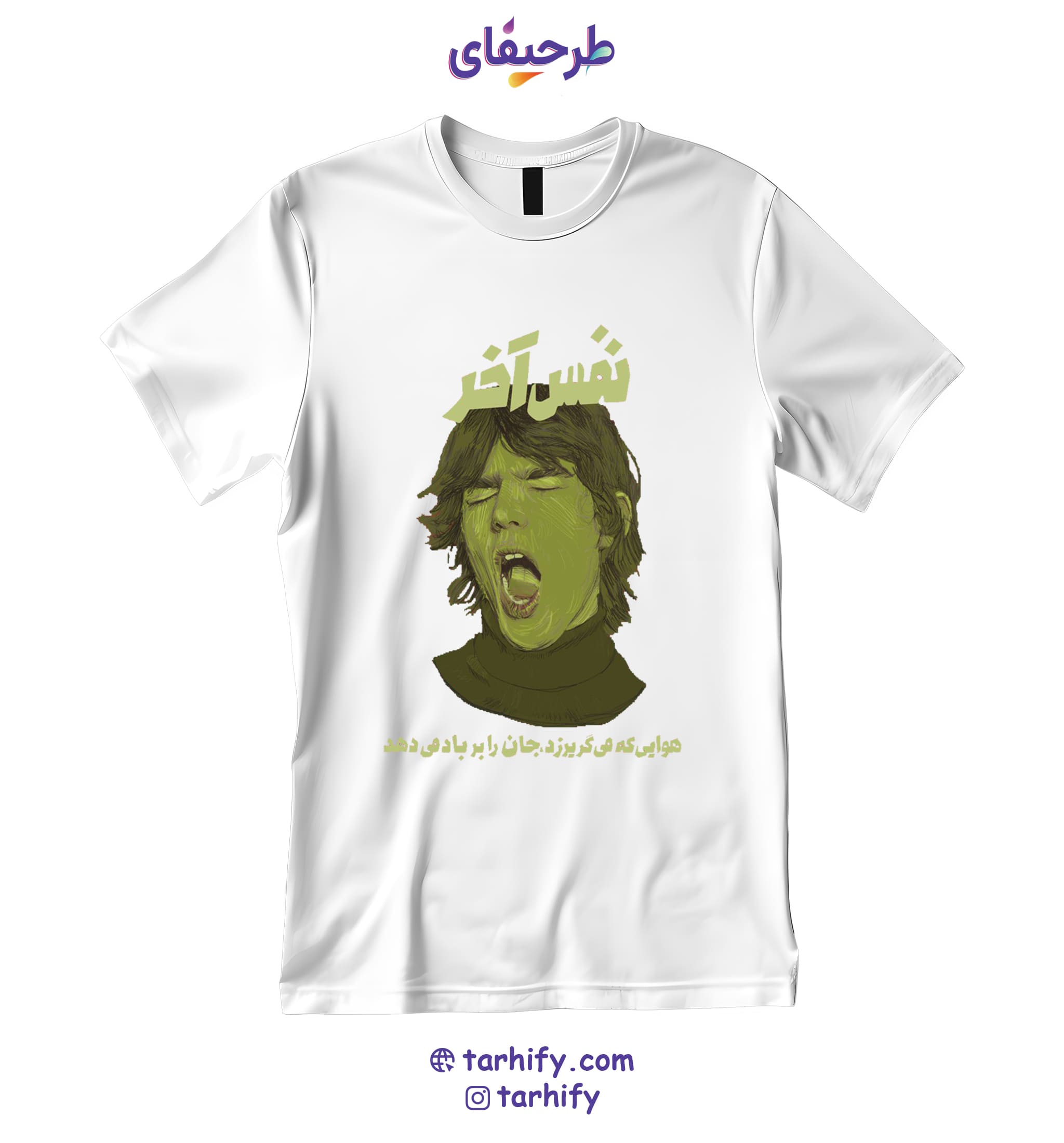 تیشرت طرح نفس آخر با ترکیب سادگی و عمق مفهومی، احساسی تلخ اما زیبا را به استایل شما میآورد. نوشتهی فارسی یا انگلیسی با فونتی ظریف و طراحی خلوت، این تیشرت را به گزینهای مناسب برای استایلهای احساسی، هنری و مینیمال تبدیل کرده است. مناسب برای کسانی که ترجیح میدهند معنا را در سادگی پنهان کنند و لباسشان روایتگر حس درونیشان باشد.